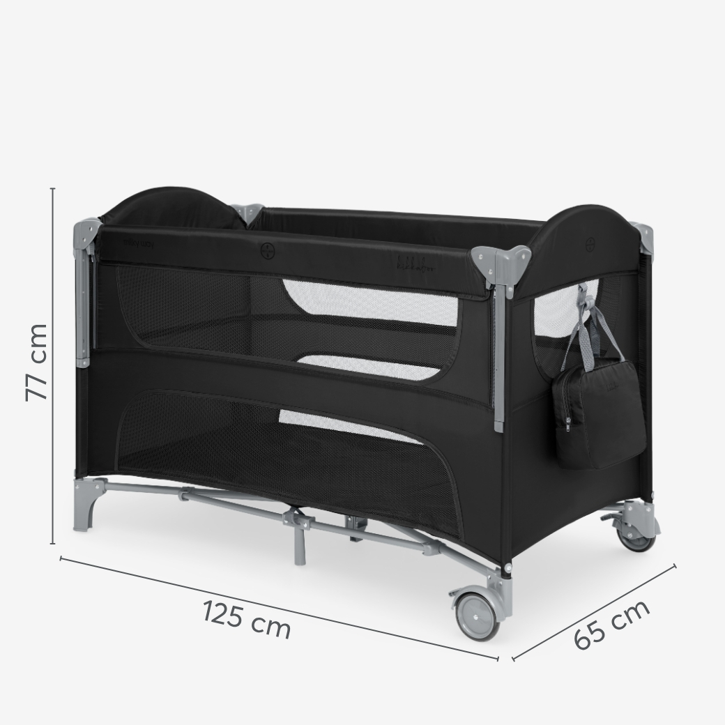 - Адаптивен дизайн – Горното ниво е подходящо за бебета до 9 кг като осигурява по-лесен достъп и грижа през първите месеци. Долното ниво е предназначено за деца от 6 до 36 месеца (до 15 кг), гарантирайки дългосрочна употреба.