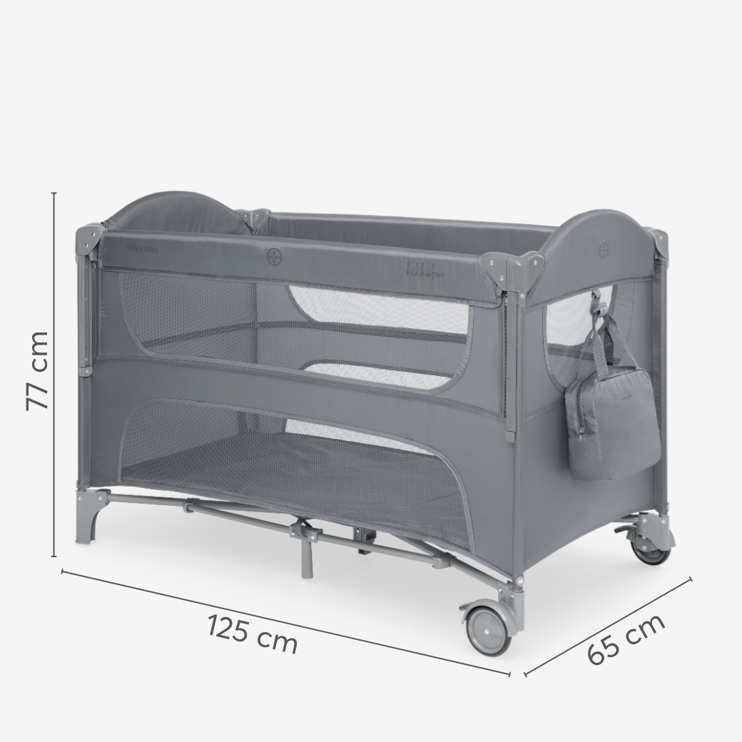 Кошарата Milky Way 2026 е създадена да осигури близост и удобство от раждането до 36 месеца. С практичната си конструкция на две нива и внимателно подбрани детайли, тя създава сигурно място за сън и игра, като същевременно се адаптира към нуждите на растящото дете.