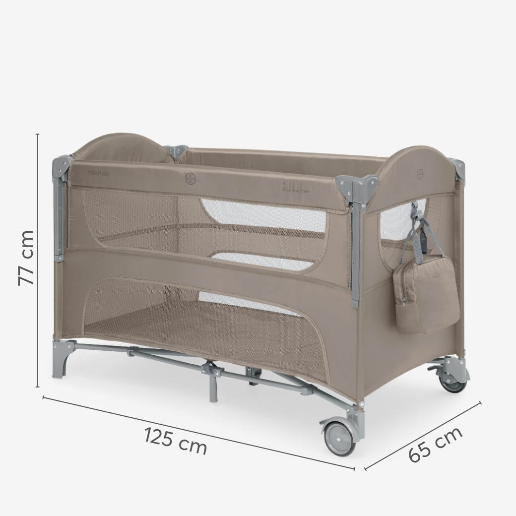 Кошарата Milky Way 2026 е създадена да осигури близост и удобство от раждането до 36 месеца. С практичната си конструкция на две нива и внимателно подбрани детайли, тя създава сигурно място за сън и игра, като същевременно се адаптира към нуждите на растящото дете.