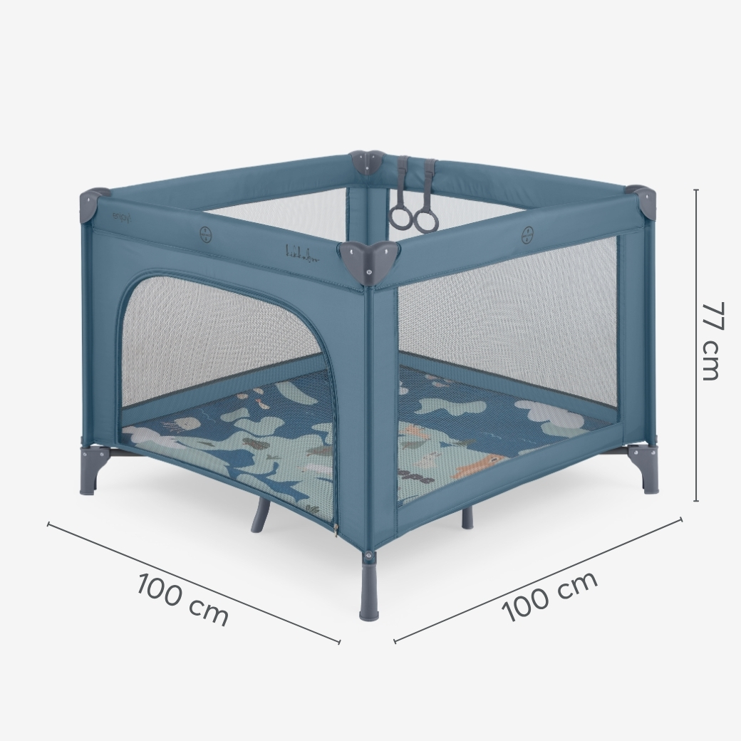 Създайте сигурно пространство за забавление на вашето мъниче с кошарата за игра ENJOY 2026, проектирана за комфорт и безопасност от най-ранните месеци до 3-годишна възраст. Едно практично решение, което бързо и лесно осигурява място за игра и почивка както у дома, така и при пътувания.
