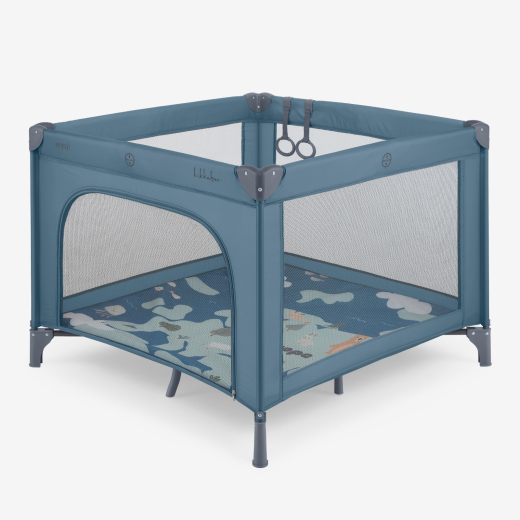 - Лесен достъп – Страничният отвор с цип улеснява самостоятелното влизане и излизане, а висящите халки стимулират движението и задържат вниманието на бебето.