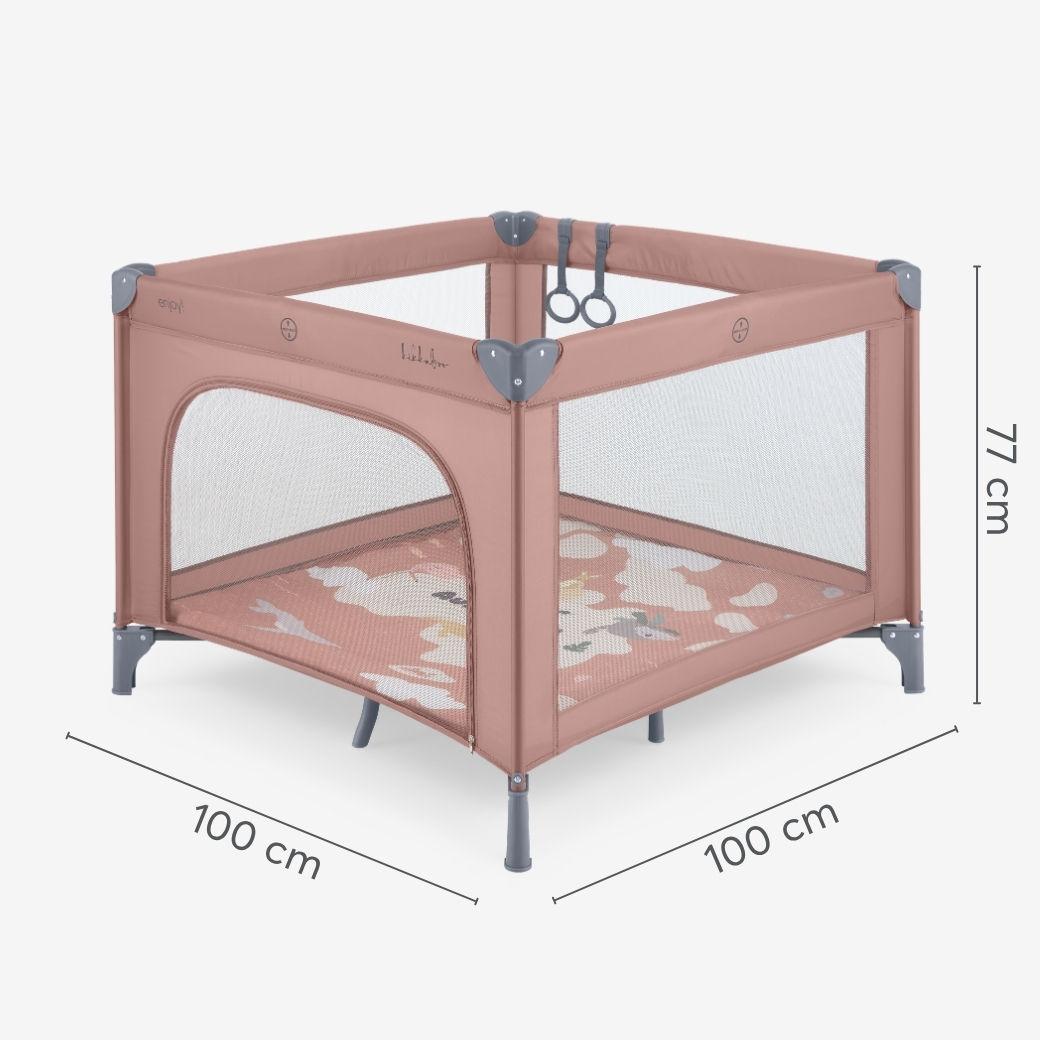 Създайте сигурно пространство за забавление на вашето мъниче с кошарата за игра ENJOY 2026, проектирана за комфорт и безопасност от най-ранните месеци до 3-годишна възраст. Едно практично решение, което бързо и лесно осигурява място за игра и почивка както у дома, така и при пътувания.