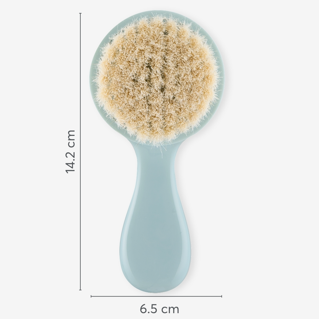 - Мек естествен косъм – Четката е изработена от естествен косъм, който разресва внимателно и се грижи за чувствителния бебешки скалп.